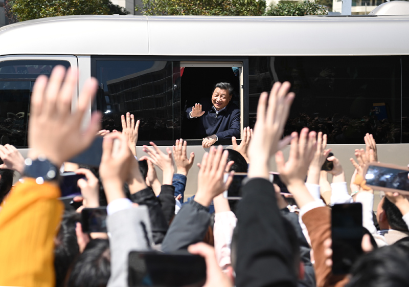 3月22日至25日,中共中央總書記、國家主席、中央軍委主席習(xí)近平在福建考察。這是25日上午,習(xí)近平在福州閩江學(xué)院考察時,向師生們揮手致意。新華社記者 燕雁 攝