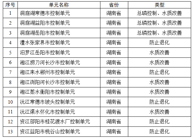 湖南省優(yōu)先控制單元劃分及水質(zhì)現(xiàn)狀和目標(biāo)表