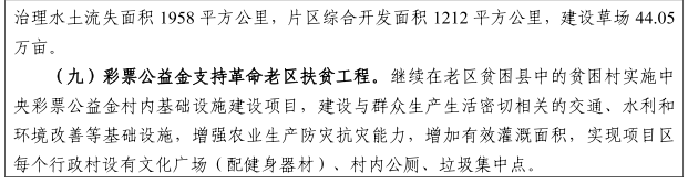 統(tǒng)籌推進(jìn)兩大片區(qū)規(guī)劃實(shí)施。組織實(shí)施湖南省武陵山、羅霄山片區(qū)區(qū)域發(fā)展與脫貧攻堅(jiān)"十三五"實(shí)施規(guī)劃,片區(qū)重大基礎(chǔ)設(shè)施和重點(diǎn)民生工程要優(yōu)先納入"十三五"相關(guān)專項(xiàng)規(guī)劃和年度計(jì)劃,集中建設(shè)一批區(qū)域性重大基礎(chǔ)設(shè)施和重大民生工程,明顯改善片區(qū)區(qū)域發(fā)展環(huán)境、提升自我發(fā)展能力。