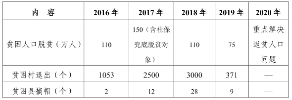 黨的十八大提出了到2020年全面建成小康社會(huì)的宏偉目標(biāo),黨中央、國(guó)務(wù)院把脫貧攻堅(jiān)納入"四個(gè)全面"戰(zhàn)略布局,作出了全面打贏脫貧攻堅(jiān)戰(zhàn)的決定。省委、省人民政府堅(jiān)決貫徹中央戰(zhàn)略部署,把貧困地區(qū)、貧困人口與全省同步建成全面小康社會(huì)作為重要政治任務(wù)和第一民生工程,明確到2019年51個(gè)貧困縣全部摘帽;到2020年6924個(gè)貧困村全部退出,現(xiàn)行標(biāo)準(zhǔn)下貧困人口全部脫貧,貧困村基礎(chǔ)設(shè)施、基本公共服務(wù)主要領(lǐng)域指標(biāo)接近全省平均水平,貧困縣農(nóng)民人均可支配收入突破10000元。