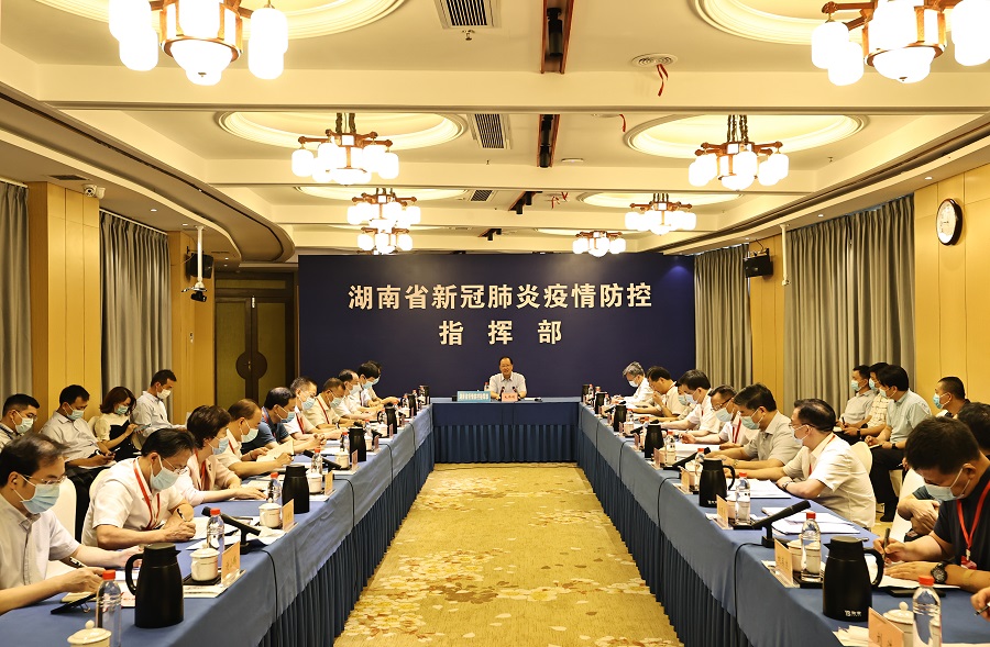 毛偉明強調(diào),各級疫情防控體系要時時保持應(yīng)急狀態(tài),各級黨政主要負責同志要靠前指揮、提級管理,確保一旦發(fā)生疫情,迅速管控到位。綜合研判當前我省疫情防控形勢,要做到“五再”:遠程管控關(guān)口再前移。關(guān)口和時間要繼續(xù)前移,入湘人員行程要進一步把準,確保嚴把口岸輸入關(guān)、重點人群關(guān)、重點場所關(guān),切實扎牢外防輸入網(wǎng)。來湘返湘跟蹤再強化。落實“入湘先報、入湘即查、入湘即檢、入湘即管”措施,強化人員入湘的全程跟蹤。監(jiān)測預(yù)警檢測再加密。實行城市重點區(qū)域加密檢測,發(fā)揮好基層醫(yī)療衛(wèi)生機構(gòu)、零售藥店等“哨點”作用,加強重點人群、社會面和重點時段監(jiān)測,做到早發(fā)現(xiàn)、早預(yù)警、快處置。重點區(qū)域防范再嚴密。加強重點區(qū)域、重點場所、重點人群的管控,強化秋季開學省外師生先行報備、落地即檢,做好開學后全員健康實時監(jiān)測。要切實履行對重大活動的屬地責任、主體責任,提前做好防控方案和應(yīng)急預(yù)案,活動期間實行相對閉環(huán)管理。防疫設(shè)施能力再加強。鞏固提升流調(diào)溯源和核酸檢測能力,加強隔離點有效儲備,確保緊急狀態(tài)下迅速轉(zhuǎn)換,確保各市州至少有1家方艙醫(yī)院能迅速啟用。