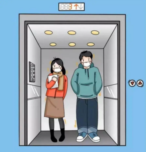 正確做法:在電梯(密閉、空氣流通較差的公共場所)、家門口的小賣部(容易產(chǎn)生人員聚集)、公共廁所(人流量較大,若消殺不及時(shí),環(huán)境中很容易殘留病毒)、其他室內(nèi)場所(商場、電影院等人員密集場所)內(nèi),都應(yīng)佩戴好口罩。
