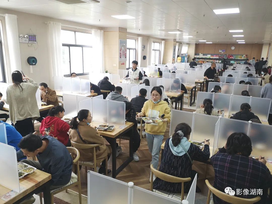 3月21日,郴州市政府機關食堂,職工按照疫情防控要求間隔就餐。賀茂峰 攝