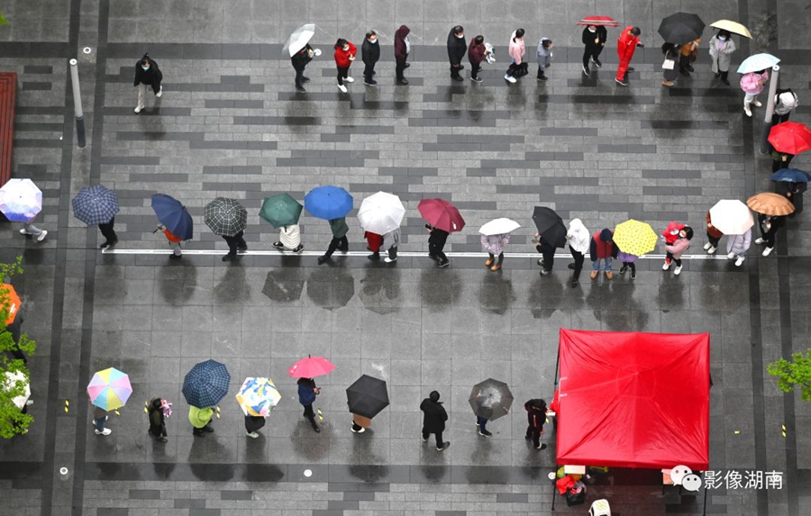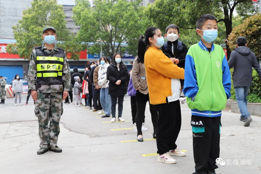 3月20日,懷化市,市民在寒風中有序排隊,做核酸采樣。徐小平 李桂花 攝