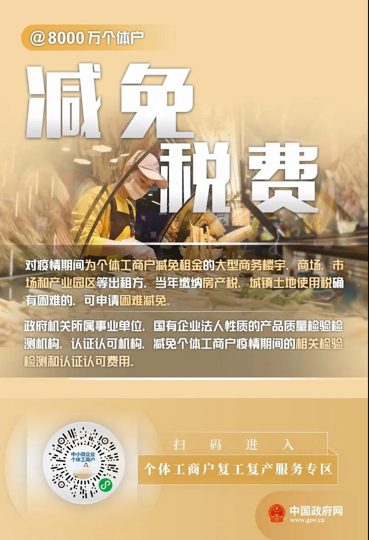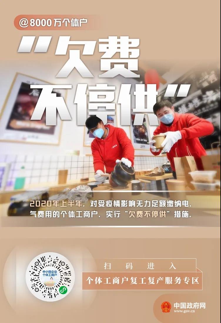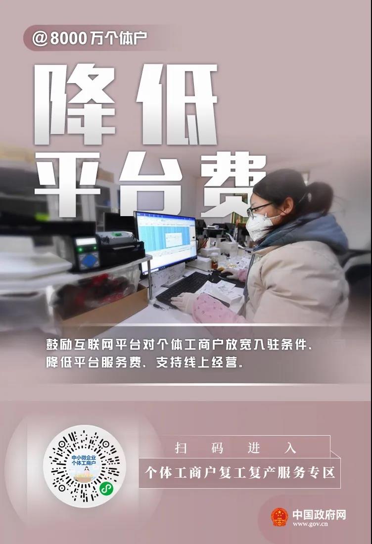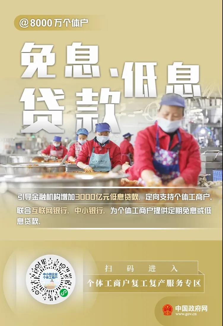 李克強(qiáng)總理2月25日主持召開(kāi)國(guó)務(wù)院常務(wù)會(huì)議,部署對(duì)吸納2億多人就業(yè)的8000多萬(wàn)個(gè)體工商戶加大扶持。市場(chǎng)監(jiān)管總局等六部門(mén)近日印發(fā)《關(guān)于應(yīng)對(duì)疫情影響 加大對(duì)個(gè)體工商戶扶持力度的指導(dǎo)意見(jiàn)》,幫助個(gè)體工商戶應(yīng)對(duì)疫情影響,盡快有序復(fù)工復(fù)產(chǎn)。對(duì)此,國(guó)務(wù)院客戶端小程序上線中小微企業(yè)、個(gè)體工商戶復(fù)工復(fù)產(chǎn)服務(wù)專(zhuān)區(qū),扶持政策,一鍵掌握??靵?lái)看看有哪些支持吧——