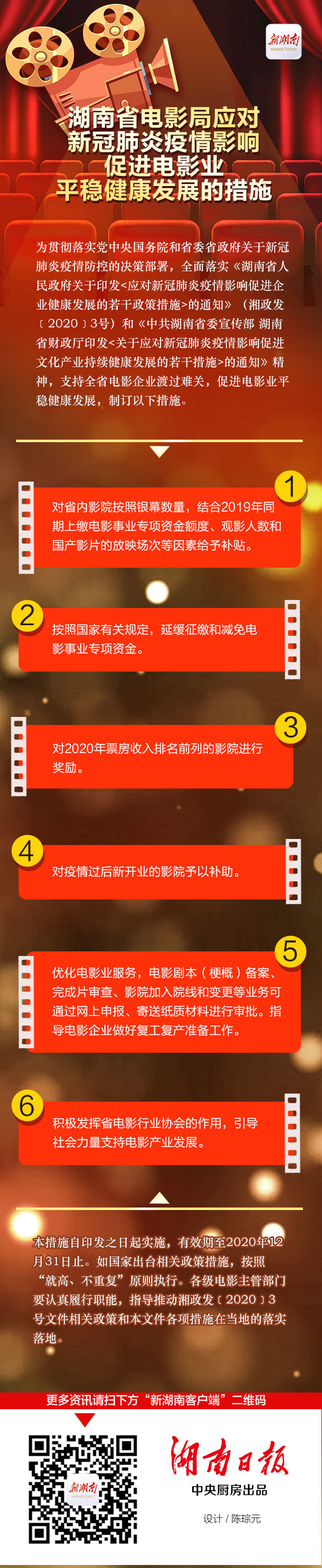 面對新冠肺炎疫情給電影業(yè)帶來的巨大影響,湖南打出政策組合拳,力助電影業(yè)盡快走出困境,推動平穩(wěn)健康發(fā)展。