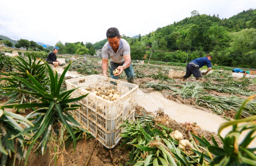 6月22日,龍山縣石牌鎮(zhèn)上母村,農(nóng)民在搶收百合。近日,龍山縣普降暴雨,全縣不同程度受災(zāi)。洪水退去后,當(dāng)?shù)剞r(nóng)民紛紛搶收搶種,進(jìn)行生產(chǎn)自救。 曾祥輝 攝(湖南圖片庫)