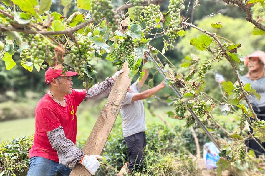 6月27日,通道侗族自治縣坪坦鄉(xiāng)皇都村,志愿者在幫助農(nóng)戶修復(fù)被洪水淹過的葡萄園。連日來,當(dāng)?shù)馗骷?jí)黨組織成立多支災(zāi)后重建志愿服務(wù)隊(duì),幫助群眾搶救受損農(nóng)作物、修復(fù)基礎(chǔ)設(shè)施,全力保障群眾生產(chǎn)生活秩序盡快恢復(fù)。 李尚引 楊春艷 攝影報(bào)道(湖南圖片庫(kù))