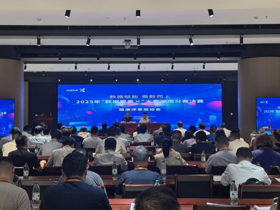 2025年“數(shù)據(jù)要素×”大賽湖南分賽決賽路演評(píng)審啟動(dòng)會(huì)現(xiàn)場(chǎng)。