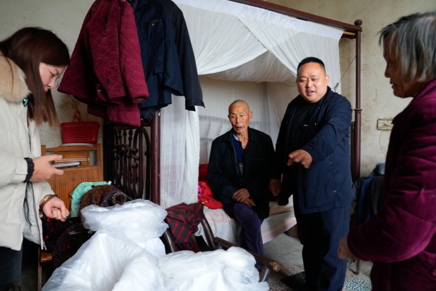 12月9日,慈利縣零溪鎮(zhèn)大莊村,村黨支部書記李剛勇(右)入戶走訪。