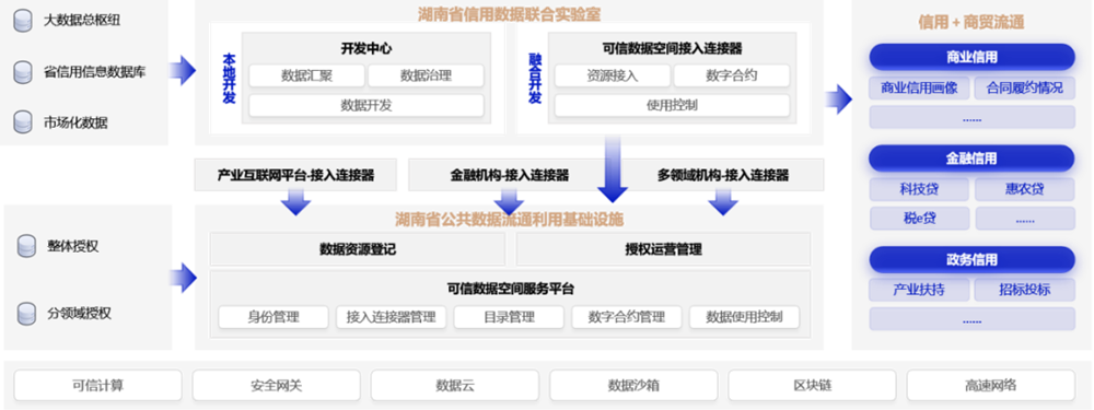 擬計劃由湖南省發(fā)展改革委牽頭,聯(lián)合湖南數(shù)據(jù)產(chǎn)業(yè)集團、高校、金融機構(gòu)、各市場主體等單位共同組建“湖南信用數(shù)據(jù)聯(lián)合實驗室”,依托省社會信用信息共享平臺、省公共數(shù)據(jù)流通利用基礎(chǔ)設(shè)施,利用可信數(shù)據(jù)空間等技術(shù),以“破解中小微企業(yè)融資難”為切入點,賦能“湘信貸”平臺健康高效運營,創(chuàng)新企業(yè)融資模式。在夯實“信用+金融”應(yīng)用基礎(chǔ)上,同步開展公共數(shù)據(jù)授權(quán)運營,加快創(chuàng)新“信用+”場景,深化數(shù)據(jù)價值挖掘,建立健全社會信用體系。