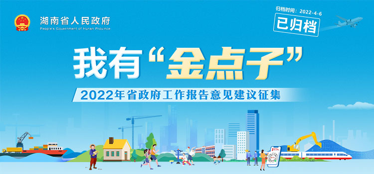 2021年12月1日至2022年湖南省“兩會”前,省政府門戶網站聯(lián)合多家媒體及各市州與廳局政府網站、政務新媒體,舉辦省政府工作報告“金點子”征集活動。