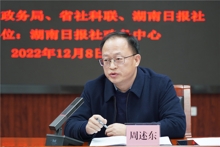 在認(rèn)真聽取大家發(fā)言后,周述東、胡代松先后作總結(jié)發(fā)言。周述東對各位專家學(xué)者表示衷心的感謝,他指出,大家的發(fā)言理論與實(shí)際相結(jié)合,宏觀和微觀相觀照,為湖南未來發(fā)展提出了很多建設(shè)性的意見和建議,將在下一步工作中認(rèn)真研究、積極吸納。他表示,明年是全面貫徹落實(shí)黨的二十大精神的開局之年,希望各位專家學(xué)者繼續(xù)圍繞湖南的重大工作做深入調(diào)查研究,以實(shí)際問題為導(dǎo)向,“大、新、準(zhǔn)、好”地提出具備前瞻性、戰(zhàn)略性、創(chuàng)新性、突破性的“金點(diǎn)子”。