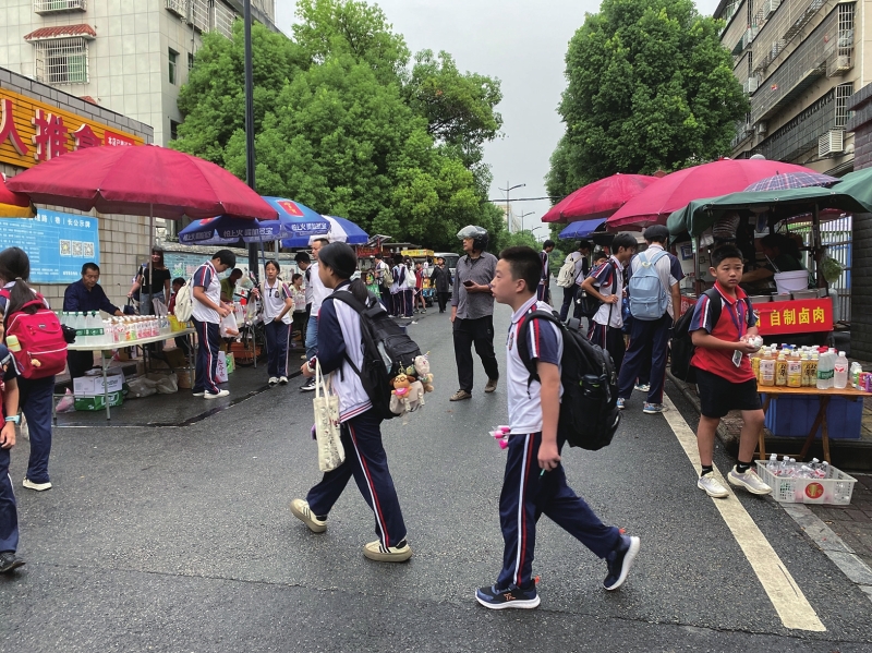 海棠學(xué)校附近設(shè)置了臨時(shí)攤販?zhǔn)鑼?dǎo)點(diǎn)。周琳攝