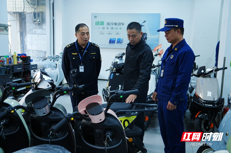 檢查組兵分多路,對城區(qū)電動自行車、摩托車銷售門店、維修場所進行突擊檢查,重點核查門店內(nèi)是否違規(guī)住人,貨物的堆放是否堵塞疏散通道和安全出口、是否存在“三合一”現(xiàn)象、消防器材是否配備完好、電氣線路敷設(shè)是否規(guī)范。隨后執(zhí)法人員還仔細核對在售車輛是否符合新國標(GB 17761-2025)及蓄電池的合格證、CCC認證標志,查看是否存在非法改裝、拼裝、銷售不合格產(chǎn)品等違法行為,特別是解除速度限制、更換大容量電池等行為。