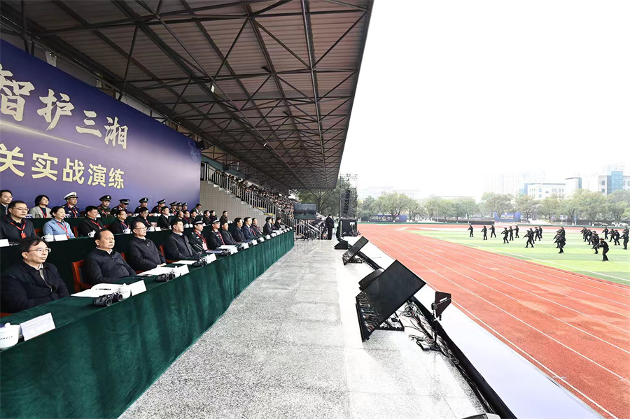 本次全省公安機(jī)關(guān)實(shí)戰(zhàn)演練科目包括“1+2+3+4”,即:“十四五”公安建設(shè)成果一項(xiàng)匯報,新質(zhì)戰(zhàn)斗力裝備展、公安部智慧公安軟件研發(fā)中心(長沙)成果展兩大展示,守護(hù)一江碧水、大型文旅安保、智慧交管三個視頻連線科目,槍械使用戰(zhàn)術(shù)、徒手攻防技術(shù)、防暴處突、事件處置四個現(xiàn)場演練科目。
