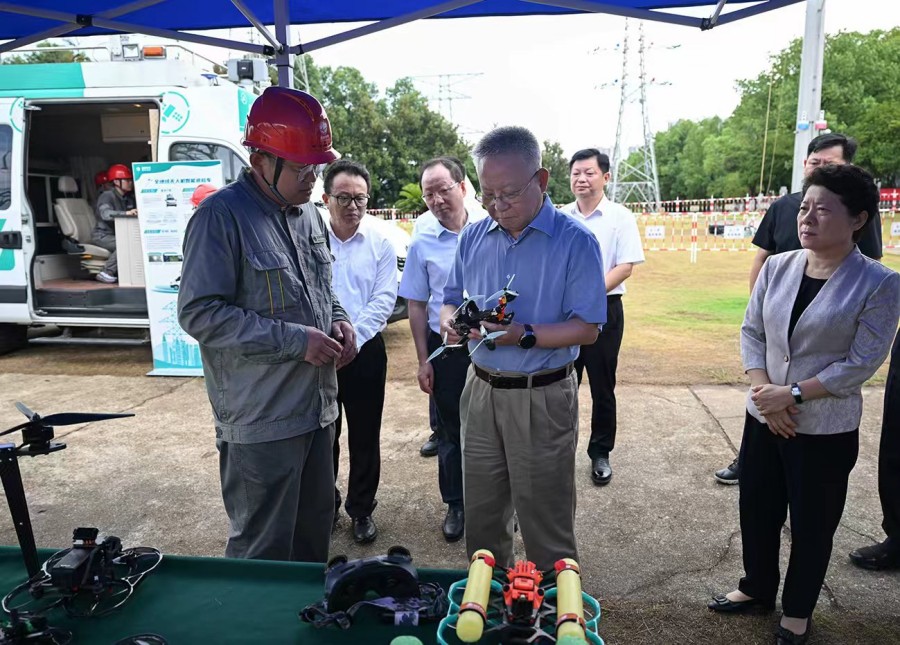 9月2日,沈曉明來到國網(wǎng)湖南電力公司帶電作業(yè)與智能巡檢技術(shù)裝備基地調(diào)研。