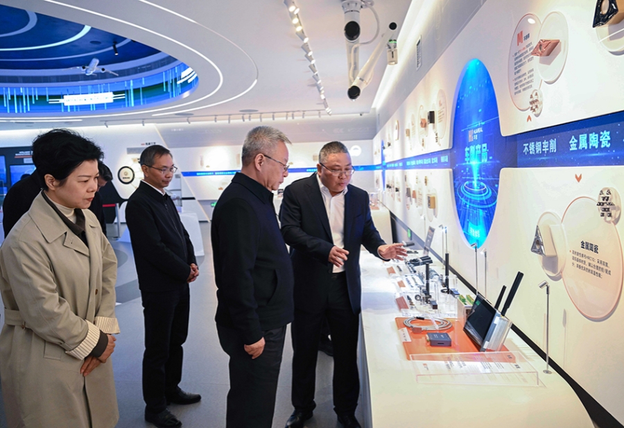 株洲清水塘片區(qū)曾是老工業(yè)基地,正在進行“環(huán)境修復(fù)+開發(fā)建設(shè)”試點。沈曉明察看清水塘產(chǎn)業(yè)新城整體風貌,指出要統(tǒng)籌污染治理和產(chǎn)業(yè)布局,支持入駐企業(yè)加大科技創(chuàng)新力度,拓展更廣泛的應(yīng)用場景,推動老工業(yè)基地綠色轉(zhuǎn)型發(fā)展。在株洲華銳精密工具股份有限公司,沈曉明了解企業(yè)生產(chǎn)經(jīng)營、技術(shù)創(chuàng)新等情況,勉勵企業(yè)堅持高端化、智能化、綠色化方向,強化產(chǎn)學(xué)研深度融合,進一步提高核心競爭力。
