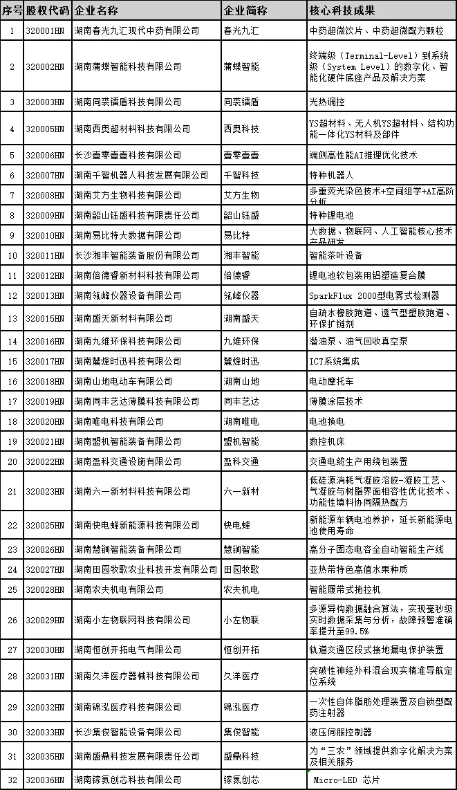 附:湖南區(qū)域性股權(quán)市場(chǎng)科技成果轉(zhuǎn)化專板入板企業(yè)名單(首批)
