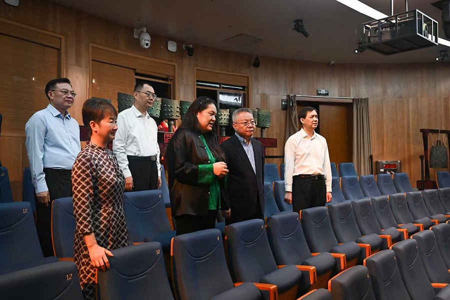 “尋·長(zhǎng)沙”劇場(chǎng)依托長(zhǎng)沙博物館改建,以長(zhǎng)沙三千年歷史文化為主線,用樂、舞、歌、吟誦相結(jié)合的藝術(shù)形式,融合現(xiàn)代聲光電技術(shù)進(jìn)行演出。沈曉明來到劇場(chǎng),了解本土文化資源利用情況。他指出,長(zhǎng)沙有深厚的文化土壤,要充分發(fā)揮小劇場(chǎng)靈活多樣的表現(xiàn)形式和獨(dú)特的藝術(shù)魅力,更好滿足群眾多樣化的消費(fèi)需求,推動(dòng)文旅融合發(fā)展,提升城市文化品位。