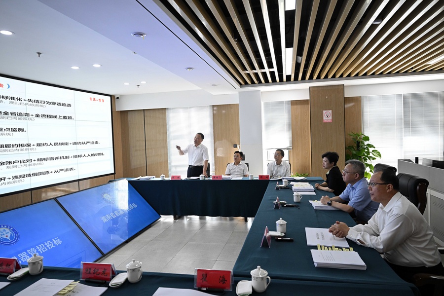 毛偉明指出,要深入貫徹習近平總書記系列重要講話精神,以“機器管招投標”為抓手,提高公共資源配置效率和公平性,為服務構建全國統(tǒng)一大市場作出湖南貢獻。要強化成果應用,堅持“適用是原則、不適用是例外”,做好試點示范、經驗推廣、制度集成。要突出“全閉環(huán)”運行,聚焦項目全過程,實現(xiàn)全鏈條“一碼貫通”、各環(huán)節(jié)信息“一網(wǎng)盡覽”、監(jiān)管“一鍵處理”。要加強“穿透式”監(jiān)管,有效貫通綜合監(jiān)管、行業(yè)監(jiān)管、紀檢監(jiān)督,加大數(shù)據(jù)對接和共享,實現(xiàn)公共資源交易領域問題常態(tài)化防范、長效化治理。