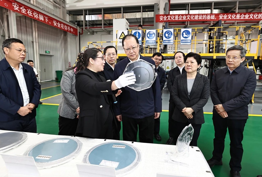 毛偉明一行還來到高創(chuàng)稀土公司,了解十大技術(shù)攻關(guān)項目進(jìn)展情況,勉勵企業(yè)持續(xù)加快資源開發(fā)綠色化、智能化、高端化步伐,加速邁向產(chǎn)業(yè)鏈中高端。
