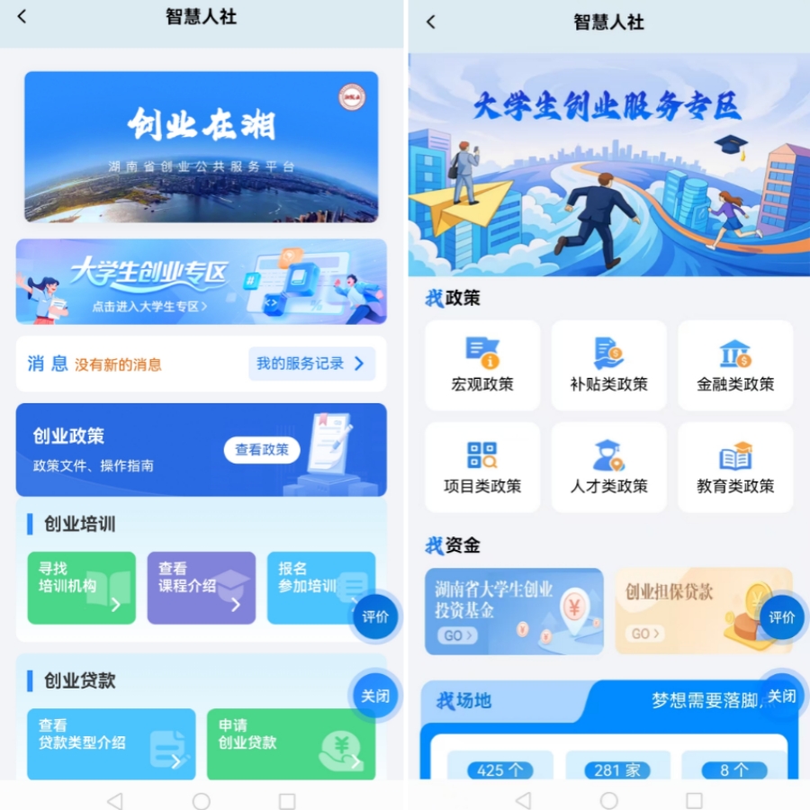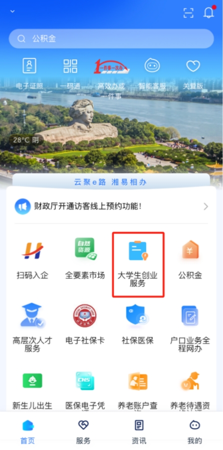 打開“湘易辦”首頁,點擊金剛區(qū)“大學(xué)生創(chuàng)業(yè)服務(wù)”即可進入專區(qū)。這里整合了你的創(chuàng)業(yè)“全攻略”:政策引導(dǎo)、資金支持、孵化載體、咨詢指導(dǎo)、項目展示、資源對接、活動賽事和創(chuàng)業(yè)典型等8大核心應(yīng)用,還有1個大學(xué)生創(chuàng)業(yè)服務(wù)專區(qū)!