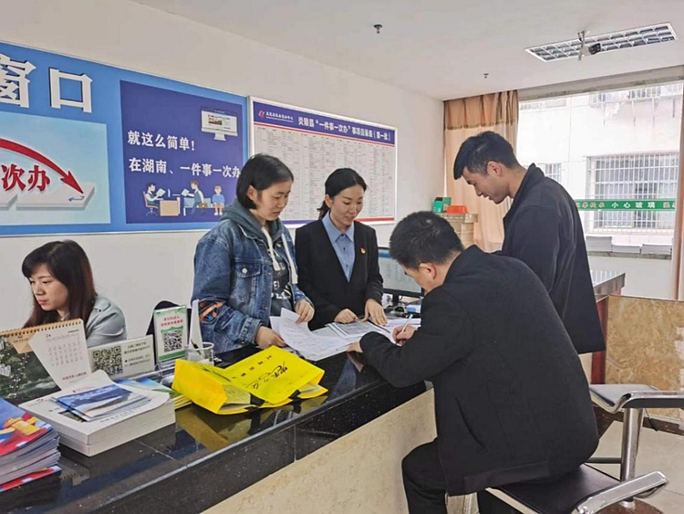 個體工商戶在株洲炎陵縣政務服務大廳“一件事一次辦”窗口辦理登記事項。
