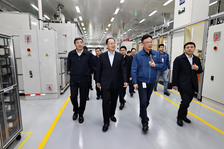 2月20日下午,毛偉明在蘇州華興源創(chuàng)考察。