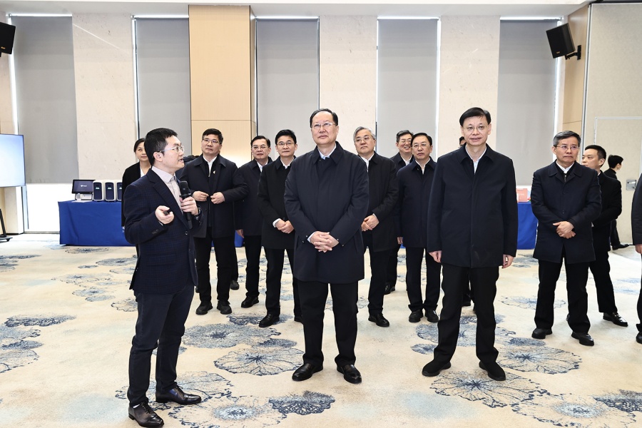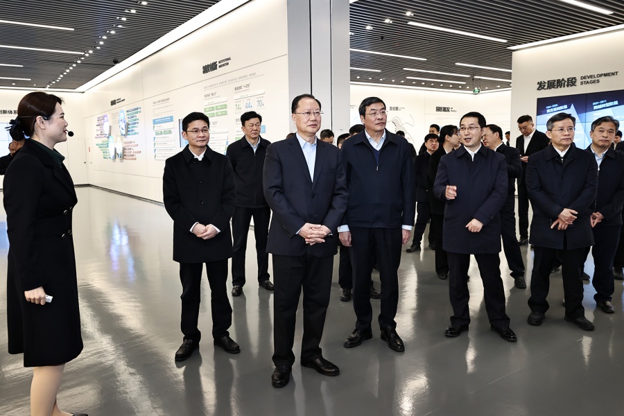 2月20日下午,毛偉明在蘇州工業(yè)園區(qū)展示中心考察。