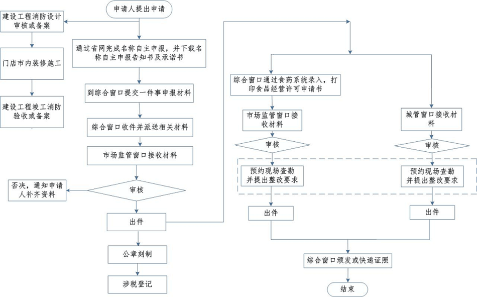 全流程承諾時限:12個工作日(不含材料補正、申請人裝修、現(xiàn)場踏勘不通過提出整改等時間)。
