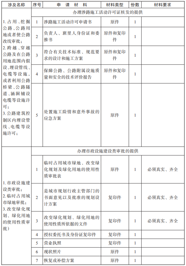 1. 跨越、穿越公路及在公路用地范圍內假設、埋設管線、電纜等設施,或者利用公路橋 梁、公路隧道、涵洞鋪設電纜等設施許可;