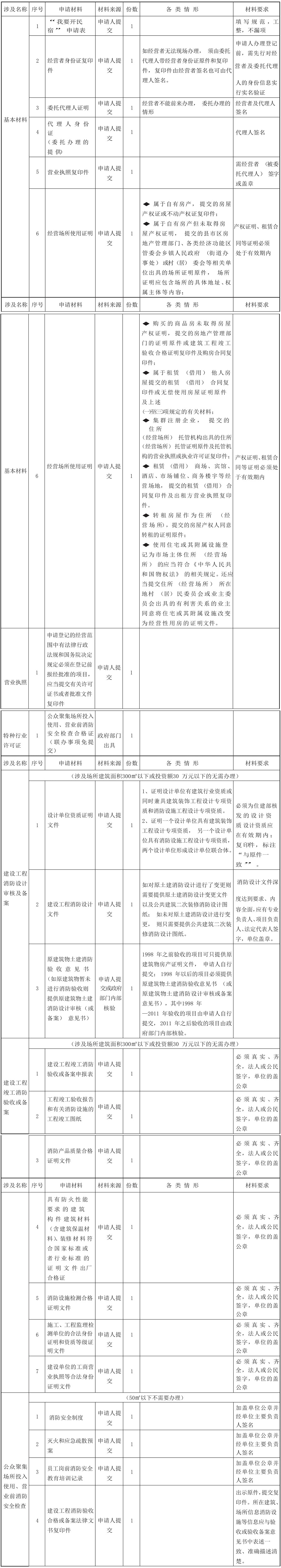 (六)公眾聚集場所投入使用、營業(yè)前消防安全檢查合格證(備注:涉及場所建筑面積50㎡以下的不需辦理);