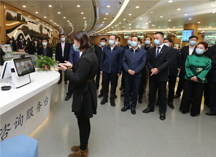 在隨后召開的調(diào)研座談會上,許達(dá)哲聽取了省政務(wù)局和省政府政務(wù)服務(wù)中心工作情況匯報,肯定了全省政務(wù)管理服務(wù)工作成效。他強(qiáng)調(diào),站穩(wěn)人民立場、堅(jiān)持以人民為中心,是政務(wù)管理服務(wù)的根本。要著力解決群眾“急難愁盼”問題,創(chuàng)新服務(wù)舉措,提升服務(wù)水平,優(yōu)化服務(wù)績效,破解老百姓辦事難的瓶頸制約,探索便捷化、個性化、智慧化服務(wù)模式,完善以群眾為主的政務(wù)服務(wù)“好差評”制度,推動一網(wǎng)通辦、跨域通辦、上下通辦。要著力營造良好的營商環(huán)境。圍繞助力“六穩(wěn)”“六?!比蝿?wù)落實(shí),深化“一件事一次辦”等“放管服”改革,激發(fā)市場主體活力,促進(jìn)國家和省各項(xiàng)政策貫徹執(zhí)行,推動就業(yè)、民生實(shí)事等任務(wù)完成,更好地促進(jìn)市場主體創(chuàng)業(yè)就業(yè)、投資興業(yè),提升老百姓獲得感幸福感安全感。要著力建設(shè)人民滿意的服務(wù)型政府,以更大力度推進(jìn)政府職能轉(zhuǎn)變,以更實(shí)舉措改進(jìn)工作作風(fēng),以較真碰硬抓好政策落實(shí),真正讓政府為老百姓辦的事越來越多,讓老百姓跑腿的事越來越少、滿意度越來越高。