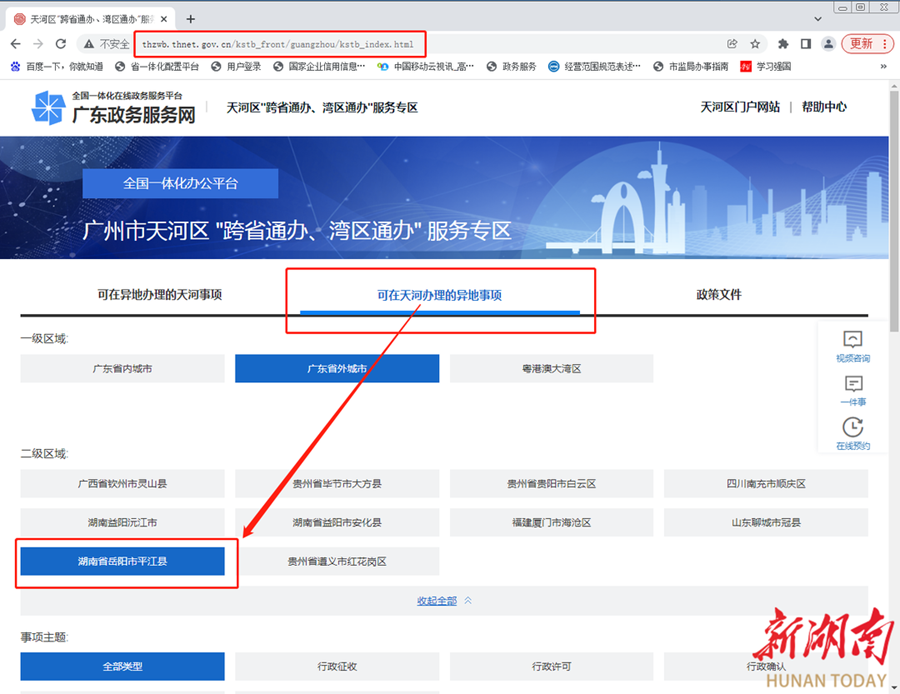 據(jù)了解,廣州市天河區(qū)已在“跨省通辦、灣區(qū)通辦”服務專區(qū)網(wǎng)站設立平江縣跨省通辦專欄,上線了43個可網(wǎng)辦事項,平江縣在天河區(qū)工作的鄉(xiāng)友可登錄天河區(qū)政務服務網(wǎng)站,在“天河辦理的異地事項專區(qū)”、廣東省外城市中找到平江縣事項辦理區(qū),異地申辦原來要本人回平江才能辦理的事項。如市監(jiān)局的營業(yè)執(zhí)照、人社部門的查詢認證、教育局教師資格認定等業(yè)務。同樣,在平江的群眾也可以在該平臺“可在異地辦理的天河事項”專區(qū)申請辦理在天河區(qū)需要辦理的有關(guān)事項,切實享受到“數(shù)據(jù)多跑路,群眾少跑腿”的政策福利。