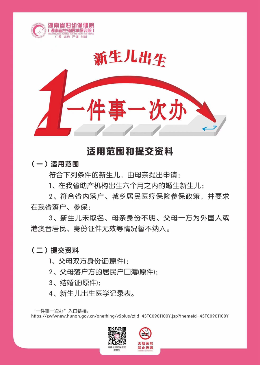 根據(jù)省委、省政府統(tǒng)一部署,“新生兒出生一件事一次辦”由省衛(wèi)生健康委牽頭,協(xié)同公安、人社、醫(yī)保、政務(wù)等部門組織實施,這是湖南省不斷推進政務(wù)服務(wù)改革的又一實踐創(chuàng)舉,是對“最多跑一次”“一網(wǎng)通辦”的創(chuàng)新升級。湖南啟動的“新生兒出生一件事”主題集成服務(wù),將新生兒出生后需要辦理的《出生醫(yī)學(xué)證明》、預(yù)防接種證、新生兒落戶登記、城鄉(xiāng)居民醫(yī)保參保登記、繳費、社保卡申領(lǐng)等多個事項,集成為“新生兒出生一件事一次辦”,讓以往需要往返醫(yī)院、派出所、人社等多個地方辦理的事項,通過一個手機/一個窗口,即實現(xiàn)多個事項線上通辦!