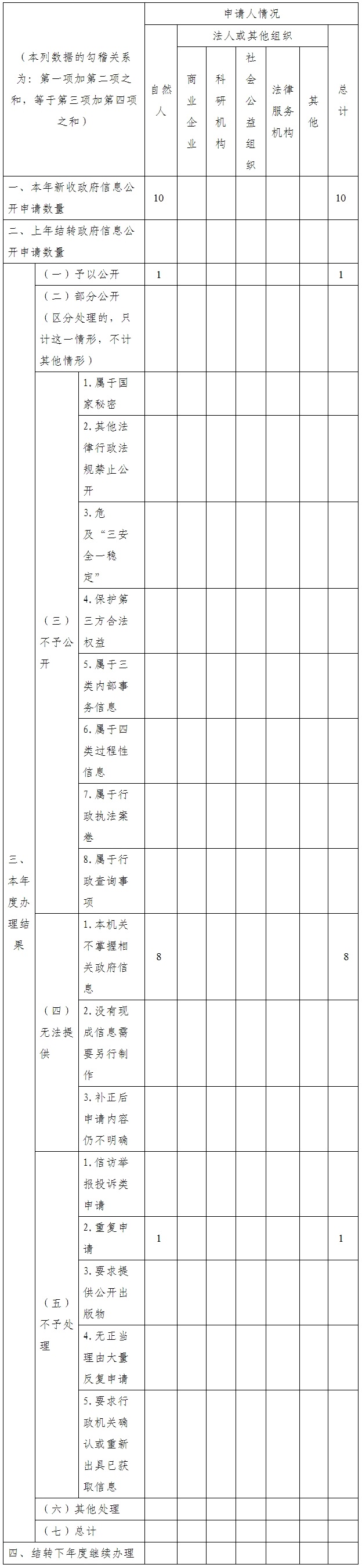 2019年,我局收到10人次自然人申請(qǐng)政府信息公開(kāi)事項(xiàng),都給予了書(shū)面答復(fù)或電話溝通,引導(dǎo)和建議申請(qǐng)者向相關(guān)部門(mén)咨詢,其中1次為同一事項(xiàng)經(jīng)回復(fù)后重復(fù)申請(qǐng),依申請(qǐng)公開(kāi)件按時(shí)辦結(jié)率100%。(詳見(jiàn)第二部分《主動(dòng)公開(kāi)政府信息情況》表格)