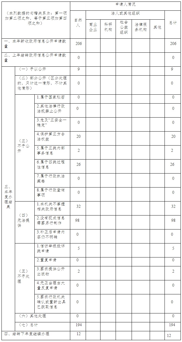 2019年,我廳高度重視政府信息公開工作,堅持以公開為常態(tài)、不公開為例外,遵循公正、公平、合法、便民的原則,認真貫徹落實《中華人民共和國政府信息公開條例》,按照《國務院辦公廳政府信息與政務公開辦公室關于規(guī)范政府信息公開平臺有關事項的通知》(國辦公開辦函〔2019〕61號)、《湖南省政務管理服務局關于做好當前政務公開工作的通知》(湘政務發(fā)〔2019〕7號)要求,組織調(diào)整了我廳門戶網(wǎng)站的政府信息公開欄目,重新修訂了《湖南省商務廳政府信息主動公開基本目錄》和《湖南省商務廳政府信息公開指南》。政府信息公開工作更加規(guī)范有序。一是主動公開政府信息及時規(guī)范。我廳主要通過湖南省商務廳網(wǎng)站、湖南商務微信公眾號、新聞發(fā)布會以及省內(nèi)主流媒體(包括報刊、廣播、電視)和商務部報刊等便于公眾知曉的方式主動公開政府信息。2019年,我廳主動公開政府信息為16019條,其中在廳門戶網(wǎng)站廳發(fā)布信息11077條、廳政務微信公眾號推送各類信息742條、其他方式公開信息4200余條。二是按程序辦理政府信息公開申請。我廳共受理答復47份206項申請事項。其中予以公開的9項,不予公開48項,無法提供130項,不予處理7項,結轉(zhuǎn)至下年繼續(xù)辦理的12項。我廳對各種途徑收到的依申請公開申請都及時登記、辦理,在登記之日起的15個工作日內(nèi)做出相關答復。我廳及時答復、轉(zhuǎn)辦“省長信箱”、門戶網(wǎng)站、12345服務熱線等各類有效咨詢、投訴信息249條,答復率為100%。不予公開的主要原因是申請的信息涉及商業(yè)秘密、個人隱私,或?qū)儆诼穆氈行纬傻倪^程性信息。無法提供的主要原因,一方面,大量申請涉及企業(yè)資質(zhì)批復,因我廳未對相關企業(yè)進行行政審批,未制作相關批復信息,也未掌握企業(yè)的有關情況,故無法提供此類信息;另一方面申請對企業(yè)的監(jiān)督檢查、違規(guī)處理、風險處置情況等信息,因這些信息涉及多個部門,多個工作環(huán)節(jié),不屬于現(xiàn)成的信息。不予處理的原因,一個是因為提交的申請為信訪事項而非政府信息公開申請;另一個是申請公開的事項我廳已發(fā)布公告,屬于已主動公開事項。結轉(zhuǎn)至下年辦理的共1件,涉及12個事項,由于收到申請的時間為12月28日,復函落款日期為1月2日,故統(tǒng)計為結轉(zhuǎn)至下年辦理。三是加強平臺建設,為政府信息管理提供可靠保障。我廳“智慧商務”項目籌備工作圓滿完成,該項目建成運營后將從根本上解決我廳“信息孤島”、“業(yè)務孤島”問題,通過建設商務大數(shù)據(jù)平臺,滿足我省開放型經(jīng)濟發(fā)展的業(yè)務需求,是“十四五”期間推動我廳政府信息公開的有力抓手;進一步規(guī)范了機房、網(wǎng)絡等的安全管理,對廳機關機房進行了二期改造,達到等保三級要求,制定了《湖南省商務廳機關機房管理辦法》,委托專業(yè)技術團隊按照規(guī)范流程對機房、機關網(wǎng)絡及辦公電腦進行專業(yè)運維,保障網(wǎng)絡、信息安全。