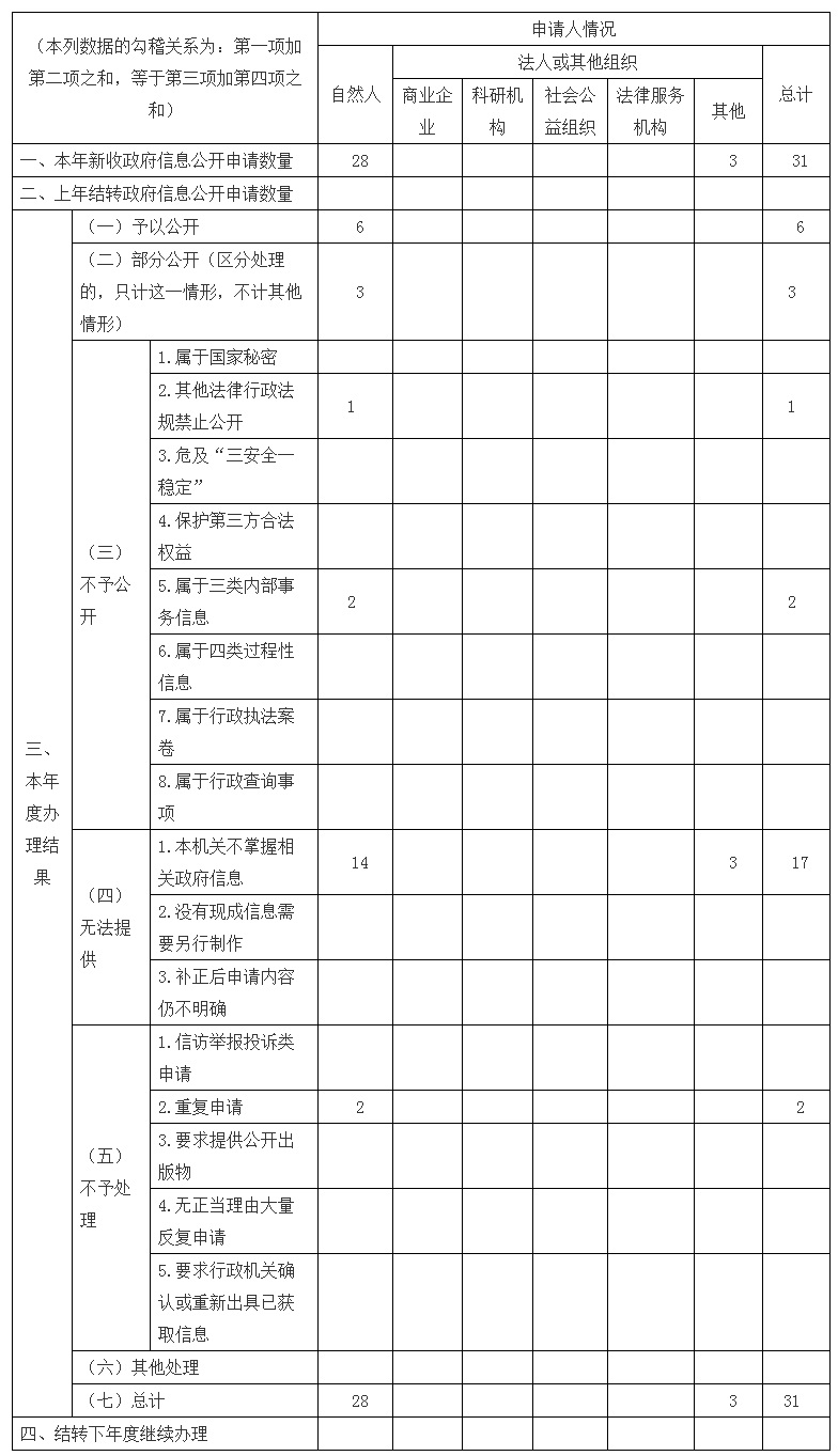 根據(jù)《中華人民共和國政府信息公開條例》(以下簡稱條例),編制并向社會公布《湖南省人力資源和社會保障廳2019年度政府信息公開年度報告》。本報告由總體情況、主動公開政府信息情況、收到和處理政府信息公開申請情況、政府信息公開行政復(fù)議、行政訴訟情況以及存在的主要問題和改進措施幾方面內(nèi)容組成。報告所列統(tǒng)計數(shù)據(jù)的期限自2019年1月1日至2019年12月31日。如對本報告有疑義,請與湖南省人力資源和社會保障廳政務(wù)(政府信息)公開領(lǐng)導(dǎo)小組辦公室聯(lián)系(地址:長沙市天心區(qū)銀杏路6號,郵編:410004,電話:0731-84900101)。