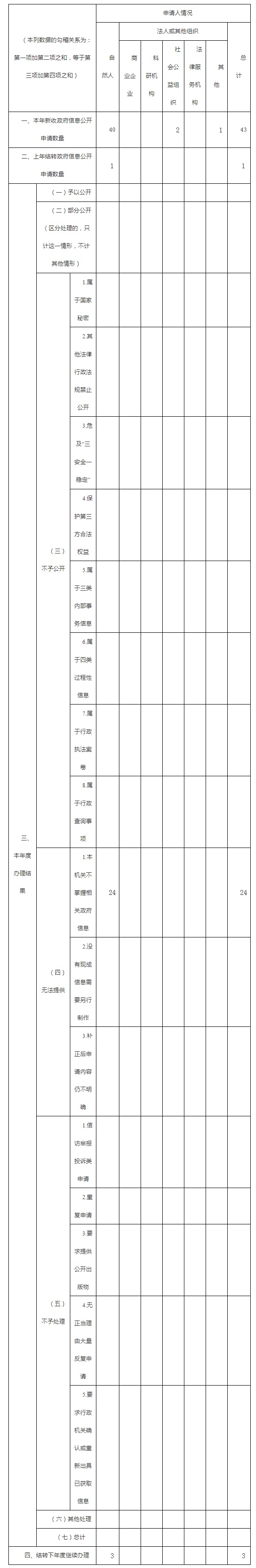 三、收到和處理政府信息公開申請情況